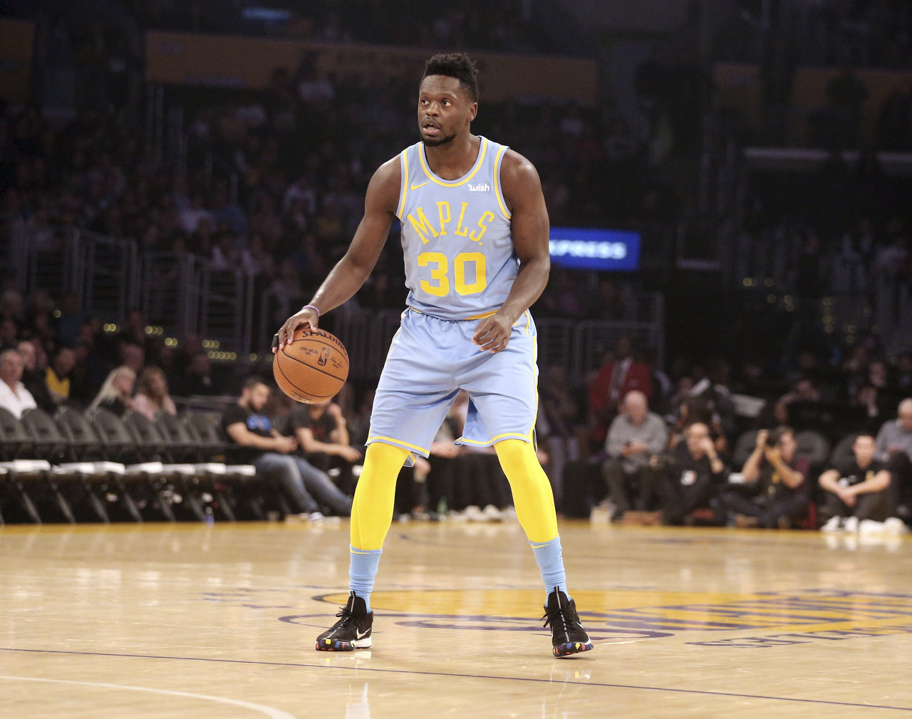 2014年NBA选秀,兰德尔在首轮第7顺位被湖人选中,之后他在湖人效力至2018年。