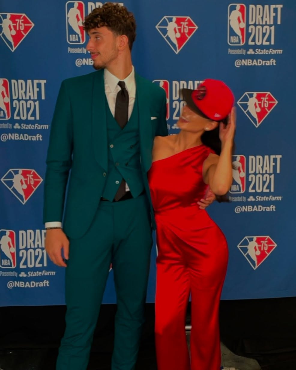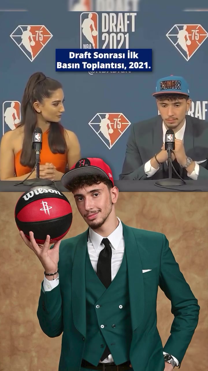 在2021年选秀大会,申京以第16顺位被雷霆选中,随后送至了火箭,当时Deniz Aksoy就陪伴在身旁。