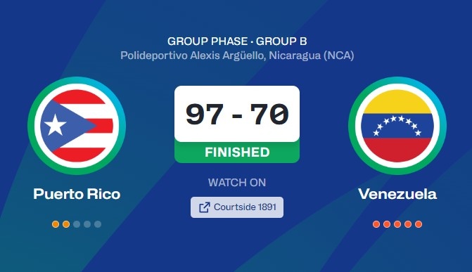 8月24日讯 今天结束的一场男篮美洲杯小组赛,波多黎各97比70大胜委内瑞拉。