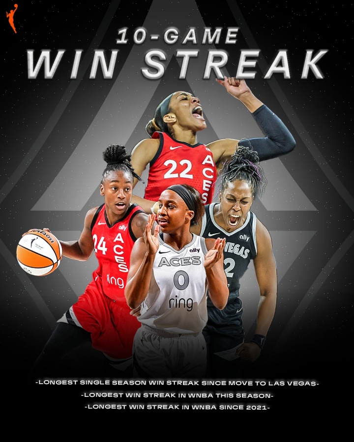 十连胜也是王牌搬迁至拉斯维加斯后单季最长连胜,同时也是WNBA本赛季最长连胜。