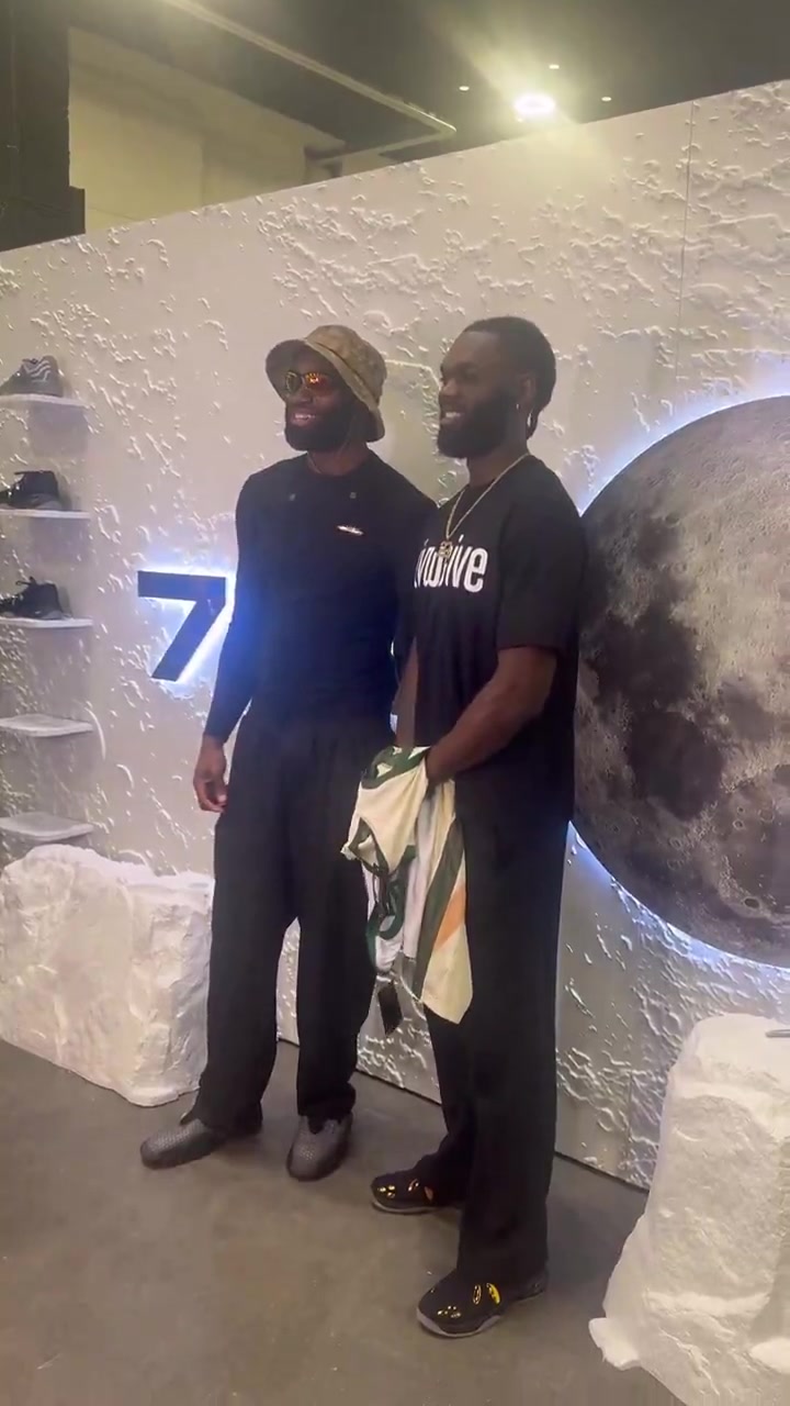 感觉比本尊还高啊!杰伦-布朗与自己的模仿者合影 笑开了花