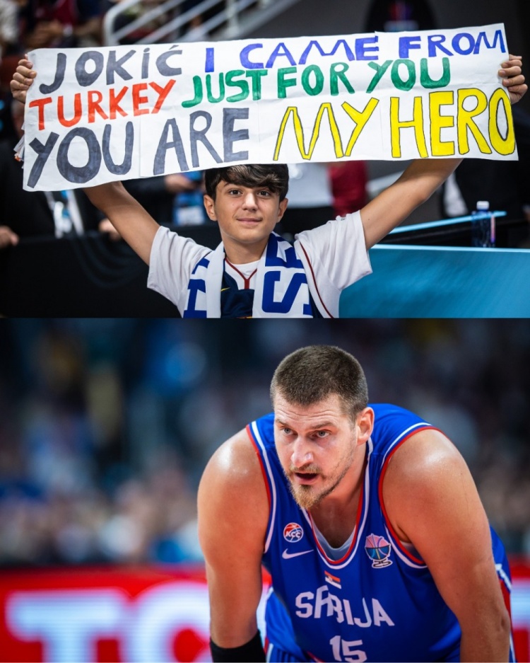 欧洲杯官方晒图,小球迷举牌:约基奇,我从土耳其过来只为看你,你是我的英雄!