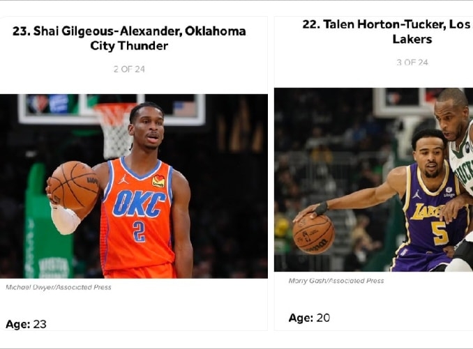 2021年11月,BR评选NBA24大24岁以下球员榜单,塔克排在第22,亚历山大第23。