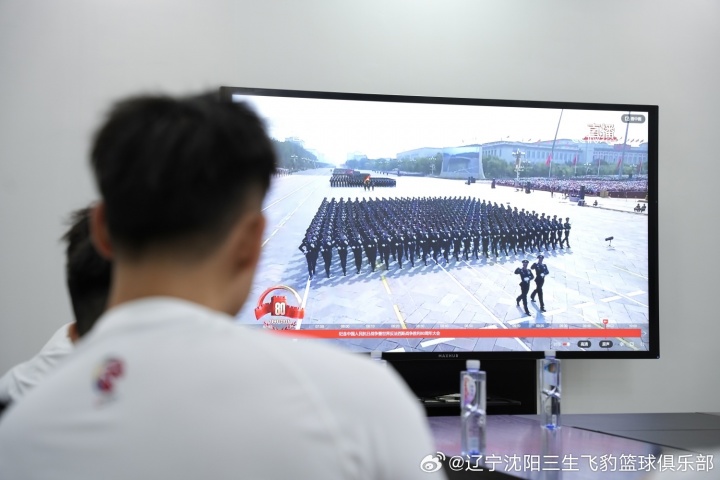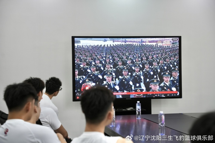 辽宁沈阳三生飞豹篮球俱乐部:组织教练组和全体球员观看阅兵直播