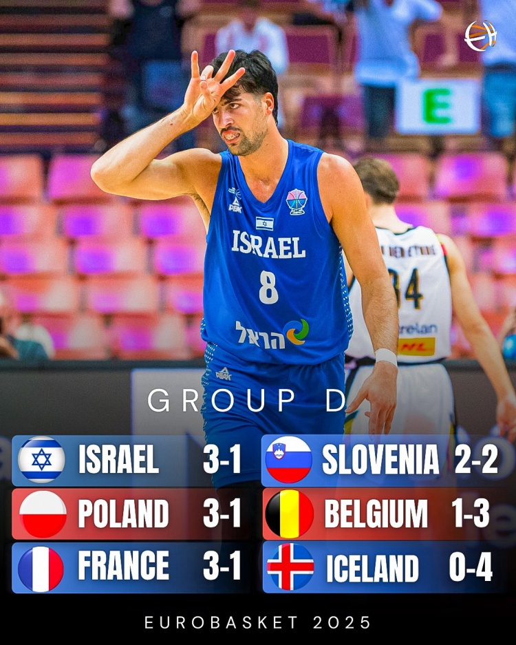 D组,以色列、波兰、法国、斯洛文尼亚晋级,比利时、冰岛出局。