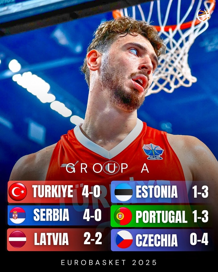 A组,土耳其、塞尔维亚、拉脱维亚已经晋级16强,捷克已经出局。