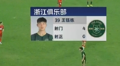 浙江错失再次反超比分的良机,目前双方2-2平。
