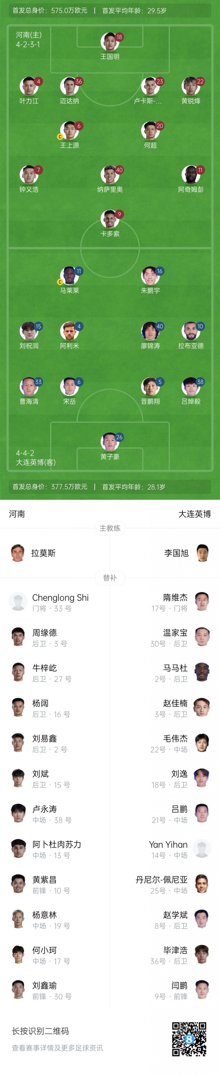 08月24日讯 北京时间19:35,中超第22轮,河南主场对阵大连英博。赛前,双方首发出炉!