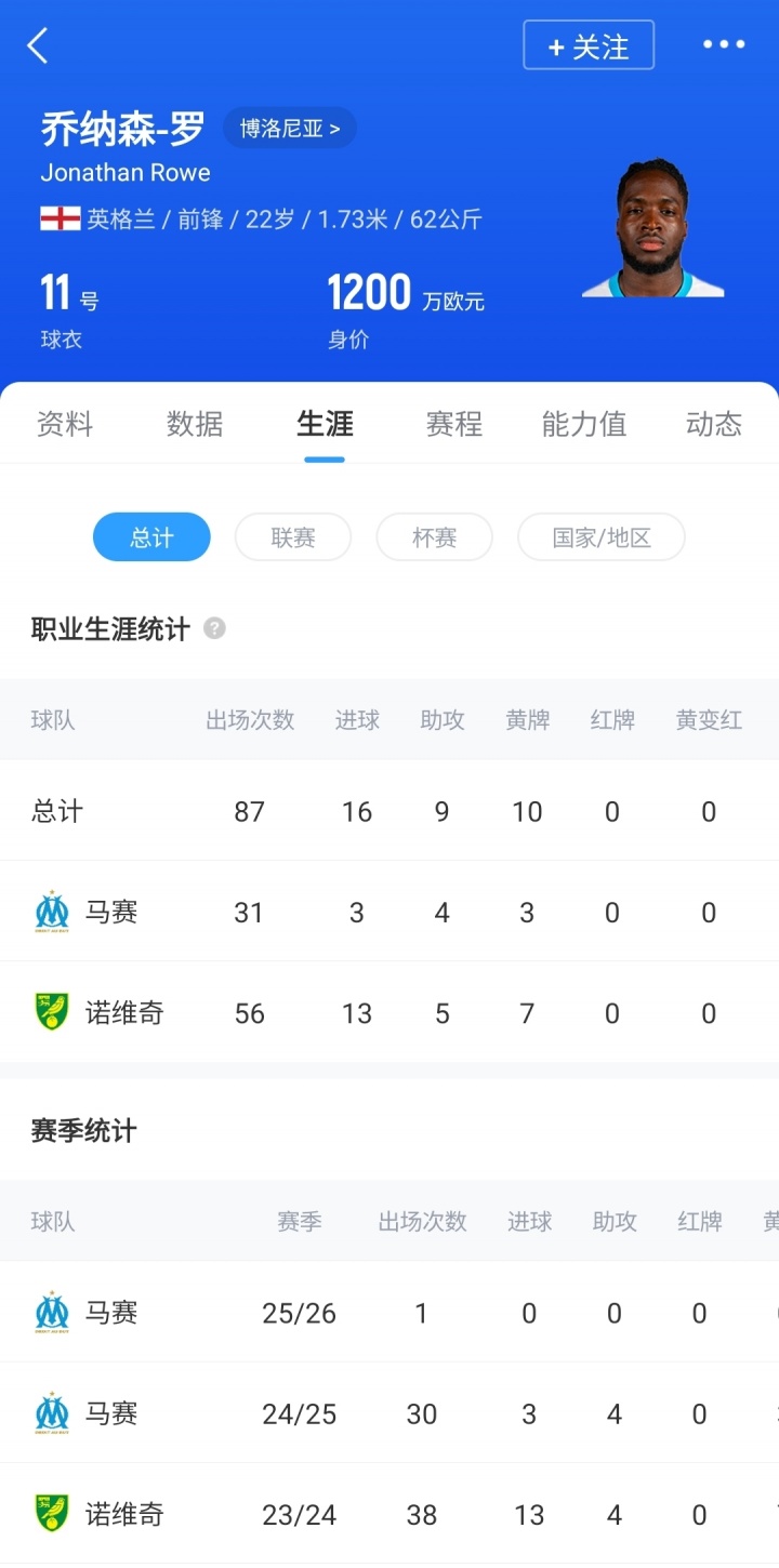 乔纳森-罗,现年22岁,英格兰前锋,上赛季外租至马赛,出战30场比赛,打进3球,助攻4次,并于赛季末1450万欧被马赛买断。