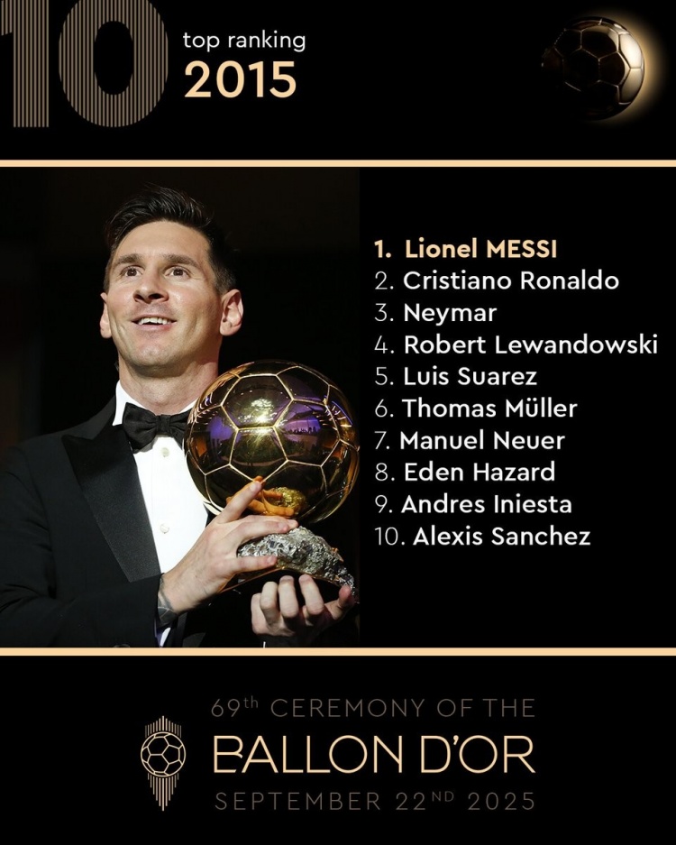2015年金球奖前十:梅西第一,C罗第二,内马尔第三
