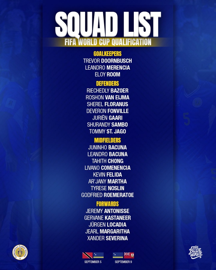 在库拉索的这份23人名单中,陈达毅(tahith chong)等多位荷兰球员在列。陈达毅本赛季因伤缺战,卢顿的前3场比赛均未登场,但他已经接近伤愈复出。若他为库拉索在世预赛登场,他将彻底无法为其他代表队效力。