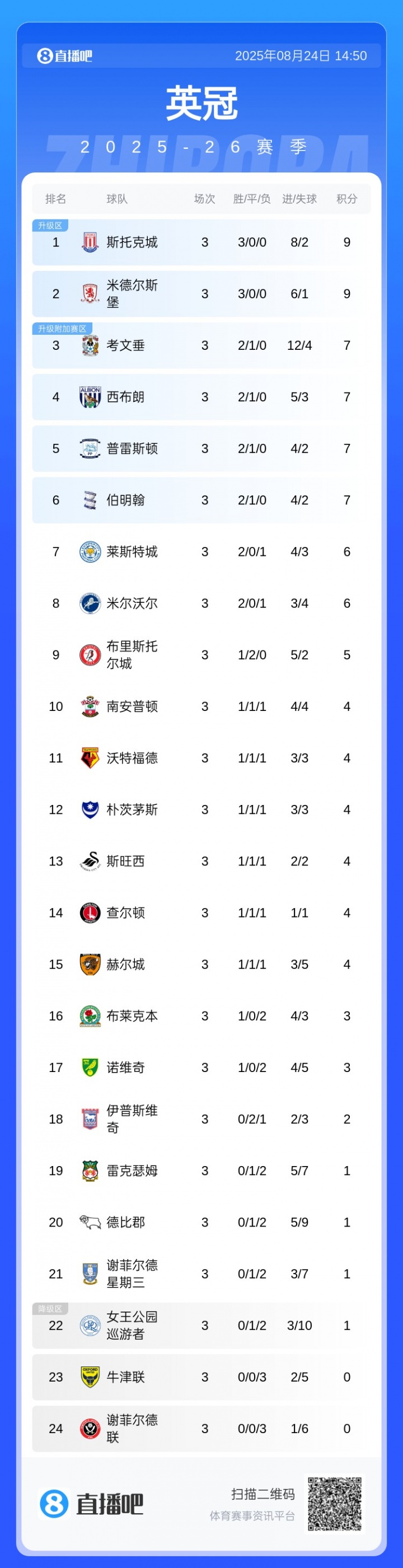 08月24日讯 英冠第3轮,谢菲联主场0-1不敌米尔沃尔,新赛季联赛3连败,积0分英冠垫底。