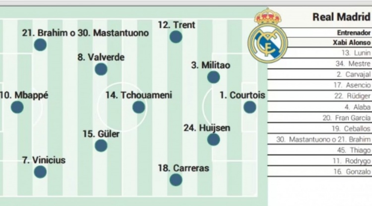 前锋:迪亚斯/马斯坦托诺、姆巴佩、维尼修斯