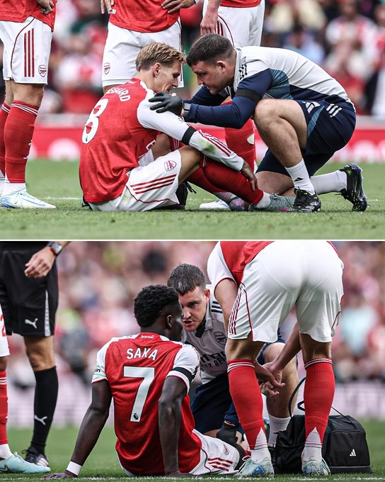 08月24日讯 今日英超第2轮,阿森纳5-0大胜利兹联,然而本场比赛厄德高和萨卡却先后伤退,加上遭受膝伤的哈弗茨,阿森纳在前2轮便因伤病损失3名大将!
