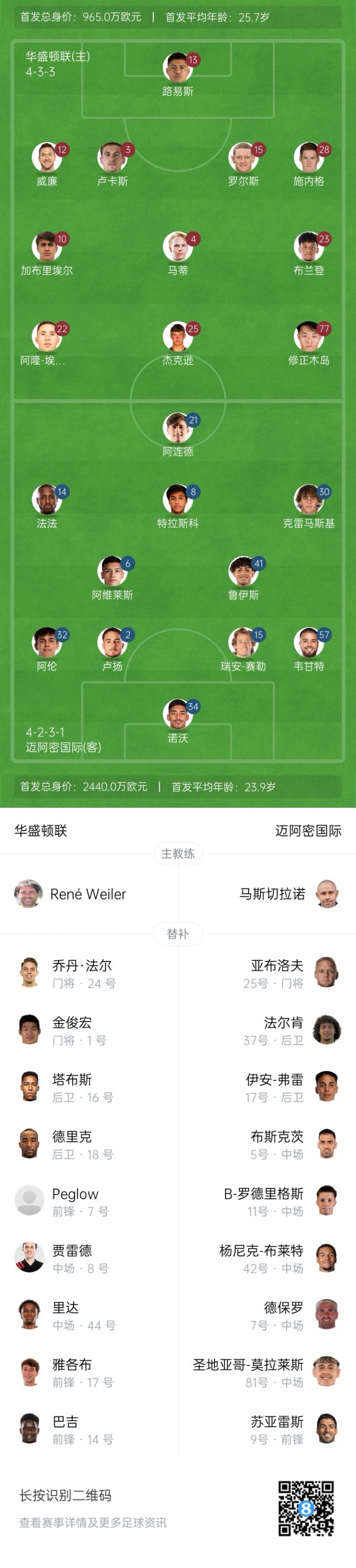 华盛顿联首发:13-路易斯、3-卢卡斯、15-罗尔斯、12-威廉、28-施内格、4-马蒂、10-加布里埃尔、23-布兰登、22-阿隆-埃雷拉、77-修正木岛、25-杰克逊