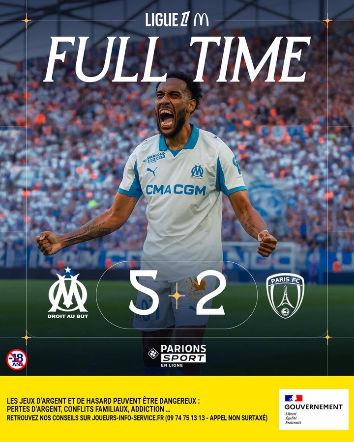 本场比赛,格林伍德点球破门帮助马赛首开记录,奥巴梅扬在第24分钟破门,帮助马赛取得2-0的领先。随后,巴黎FC连入两球将比分扳平,奥巴梅扬第73分钟再次破门,帮助马赛再次领先,他也上演梅开二度,霍伊别尔、瓦斯在第81分钟和补时阶段分别破门。马赛最终主场5-2击败巴黎FC,取得联赛首胜。