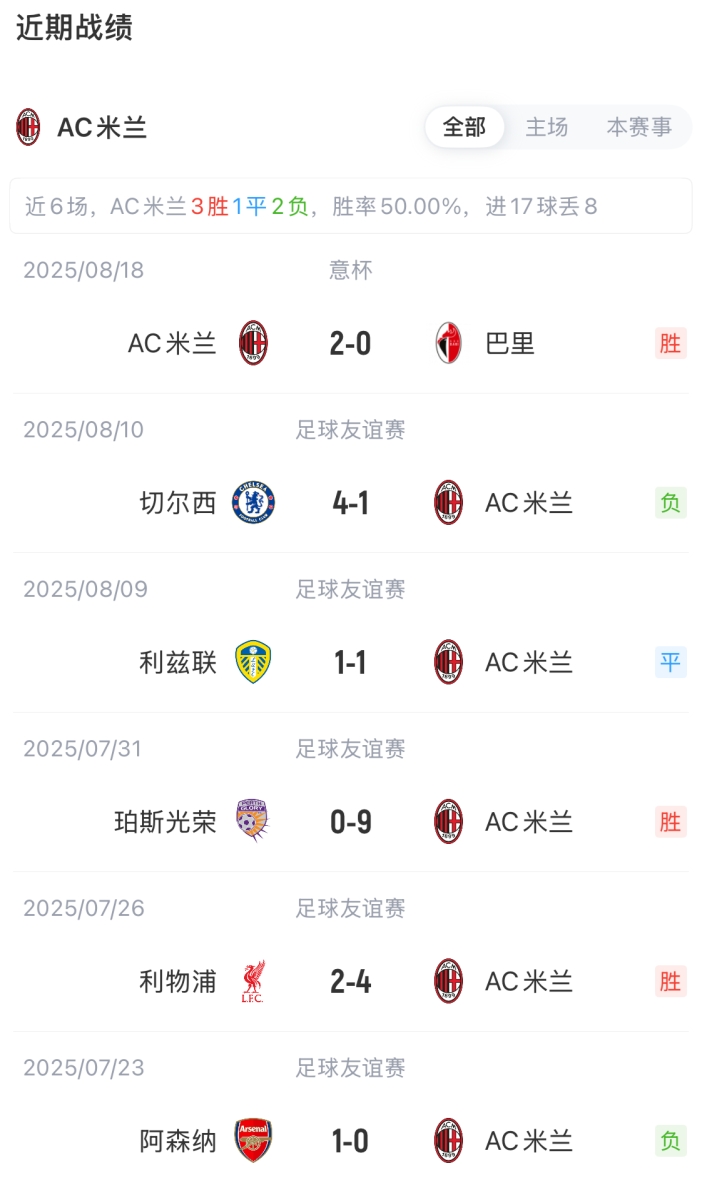 米兰替补:1-P-泰拉恰诺、37-皮塔雷拉、5-德温特、20-A-希门尼斯、33-巴特萨基、24-阿特卡梅、4-里奇、80-穆萨、30-亚沙里、21-丘库埃泽