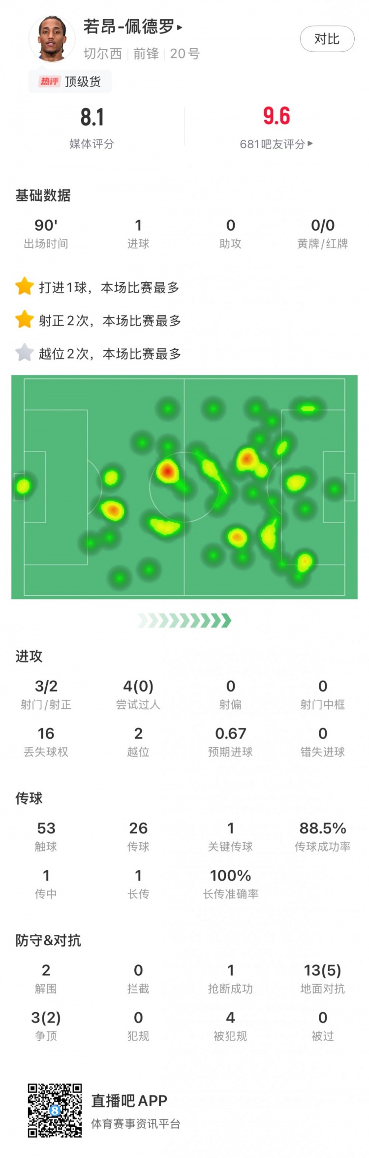 头球破门,若昂-佩德罗当选切尔西vs富勒姆一役队内最佳球员