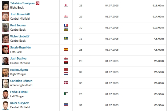 失业找队!德转自由球员身价TOP10:富安健洋、祖玛、齐耶赫在列