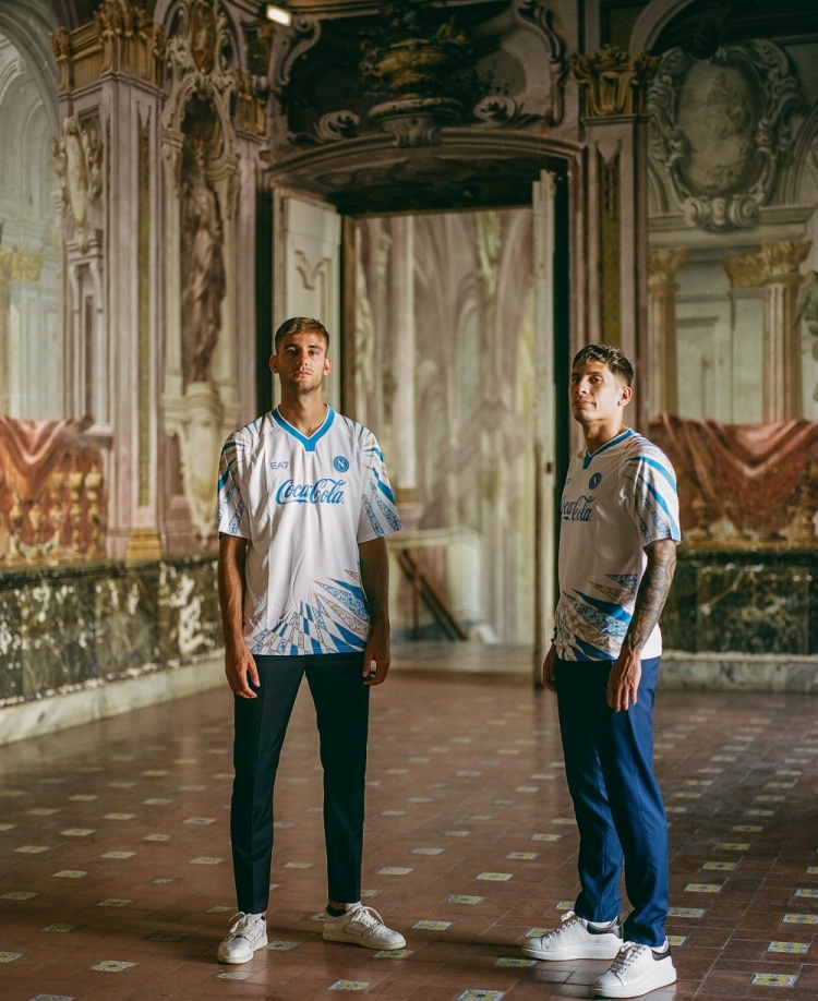 此球衣的发布照也是在波蒂奇皇宫拍摄,该宫殿由卡洛斯三世于1738年建造,曾是宫廷的夏季居所,是十八世纪波旁王朝的一颗明珠,面向维苏威火山和大海。