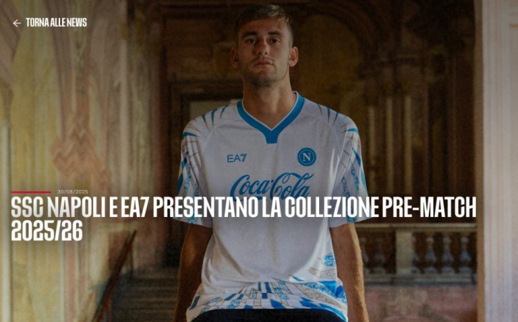 8月31日讯 那不勒斯与EA7发布了2025-26赛季新款赛前训练服,这款球衣已在北京时间今天凌晨对阵卡利亚里的比赛中首次亮相,这是本赛季那不勒斯在马拉多纳球场的首场正式比赛。
