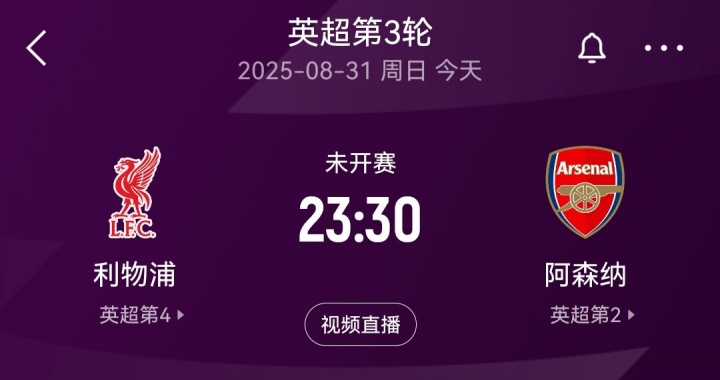 两支夺冠热门早早相遇,两队目前都是两连胜,阿森纳以净胜球优势排在第2,利物浦暂居第4。