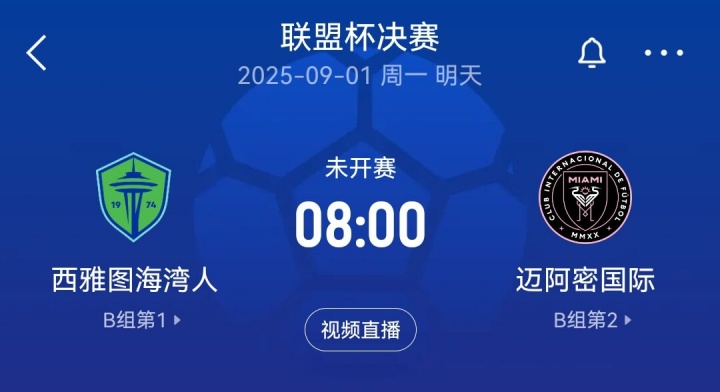 9月1日 8:00 联盟杯决赛 西雅图海湾人vs迈阿密国际