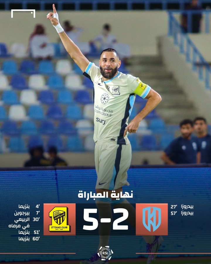 🐯本泽虎!本泽马沙特联首轮上演帽子戏法,吉达联合5-2大胜