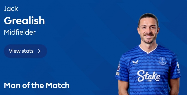 本场比赛格拉利什首发登场发挥出色,贡献2次助攻,赛后他也当选英超官方球迷票选全场最佳球员。