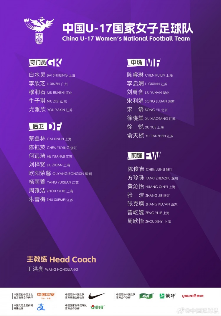 U17女足集训名单:28人入选,王洪亮挂帅,朱挺、姜宁为训练员