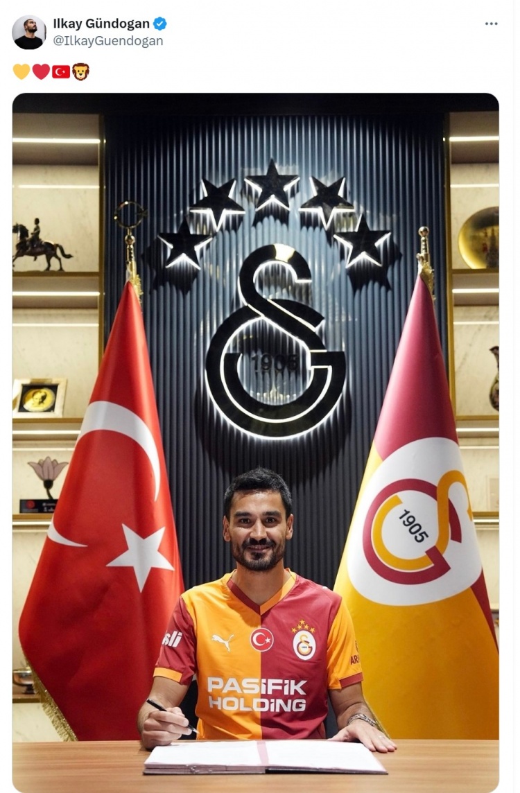 9月3日讯 曼城中场京多安免签加盟加拉塔萨雷,京多安更新社媒动态,晒出签约的照片。